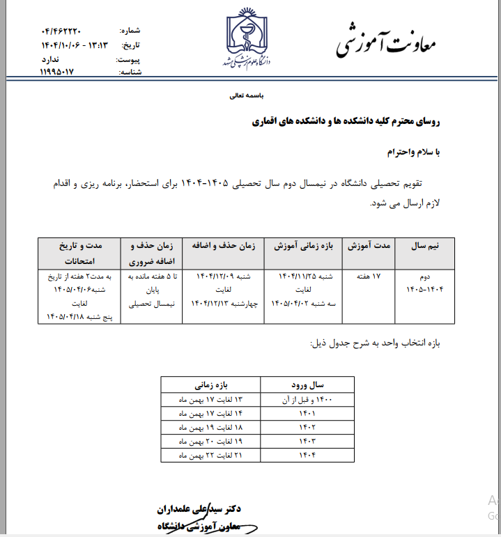 تقویم آموزشی 09 دی 1404 بازدید: 1086 امتیاز: ( 1 Rating ) تقویم آموزشی سال تحصیلی 1405-1404 امتیاز کاربران لطفا رای دهید رای 1 رای 2 رای 3 رای 4 رای 5 تقویم آموزشی نیمسال دوم 1405-1404 تقویم آموزشی نیمسال اول 1405-1404